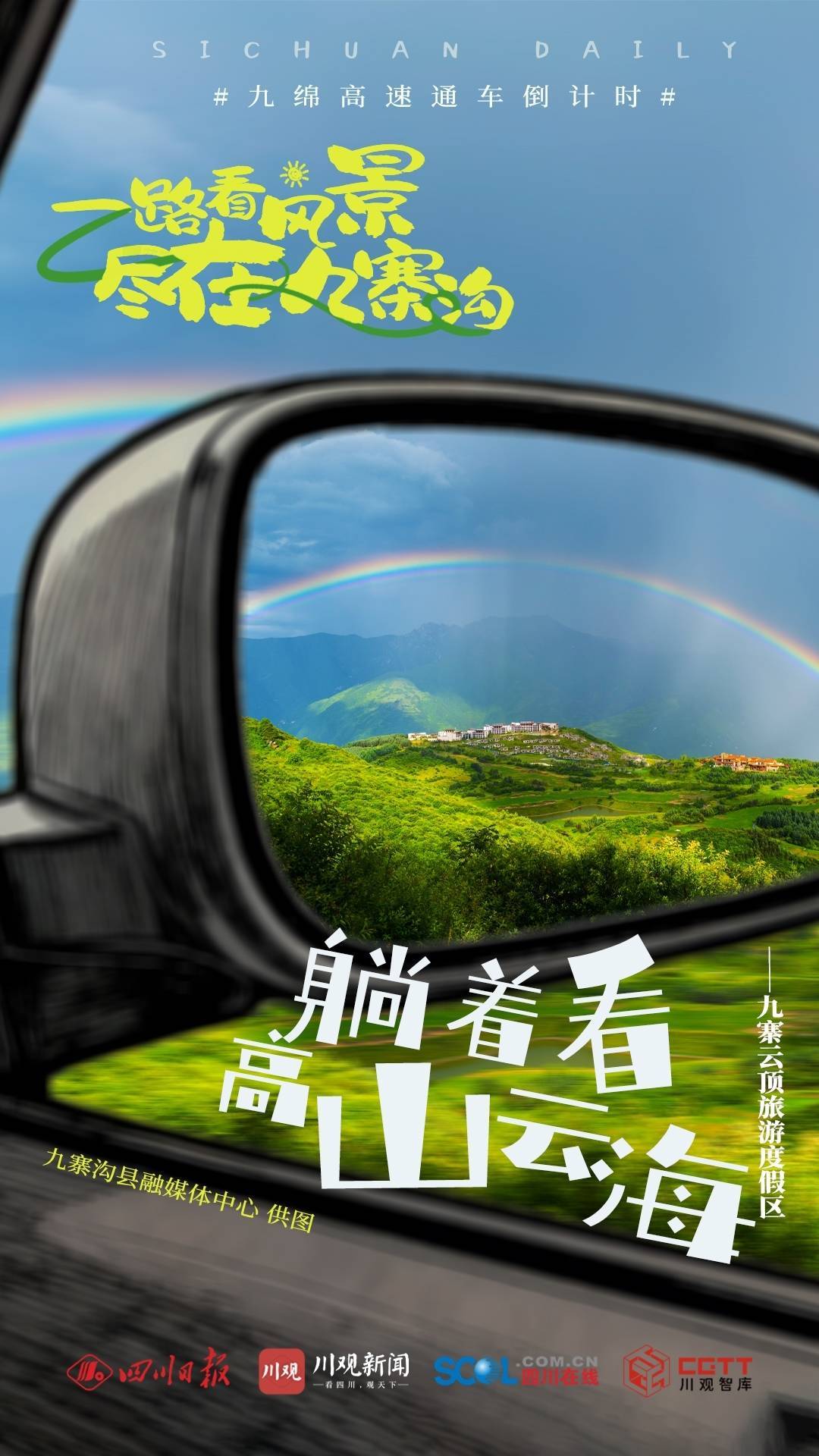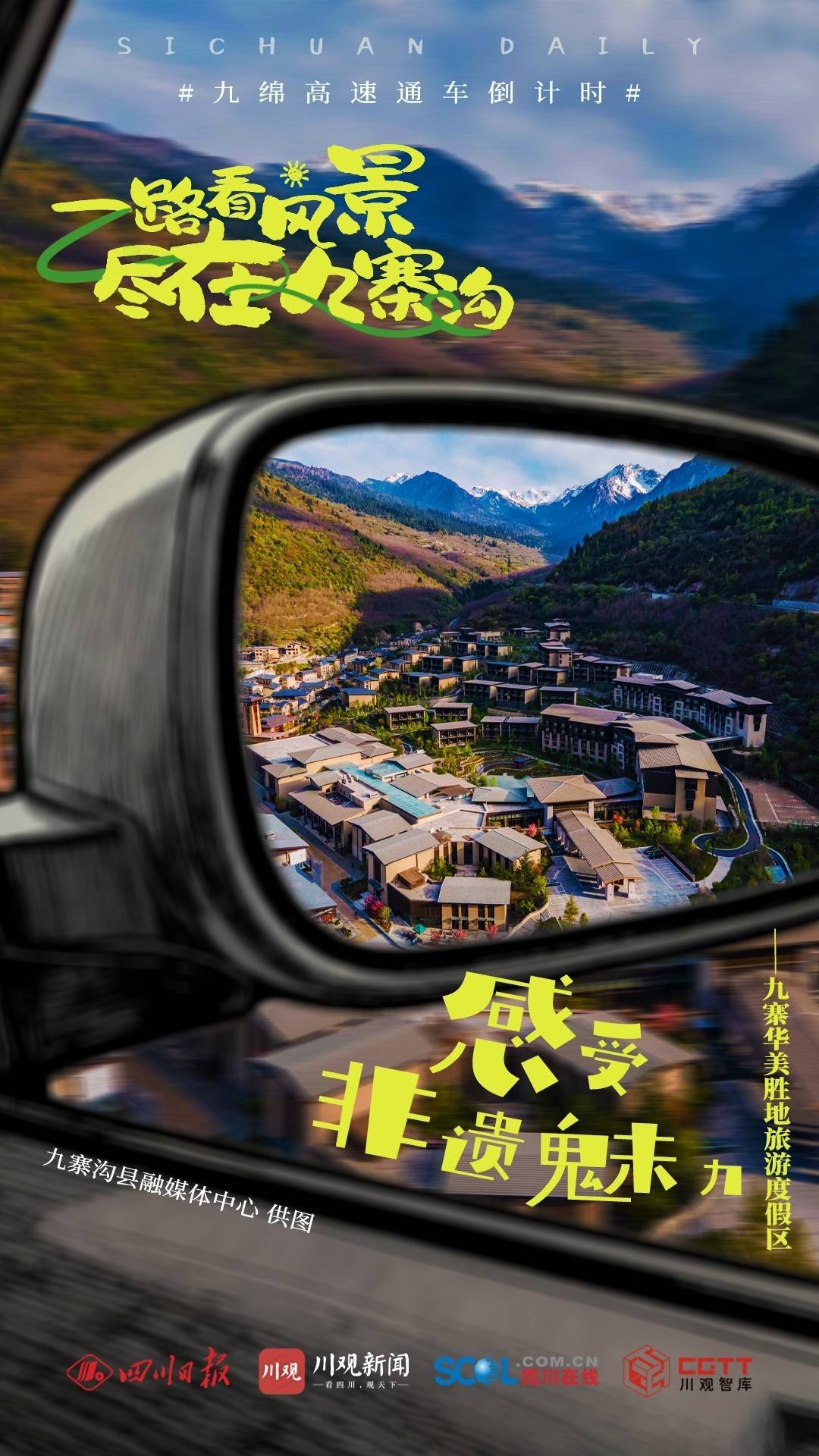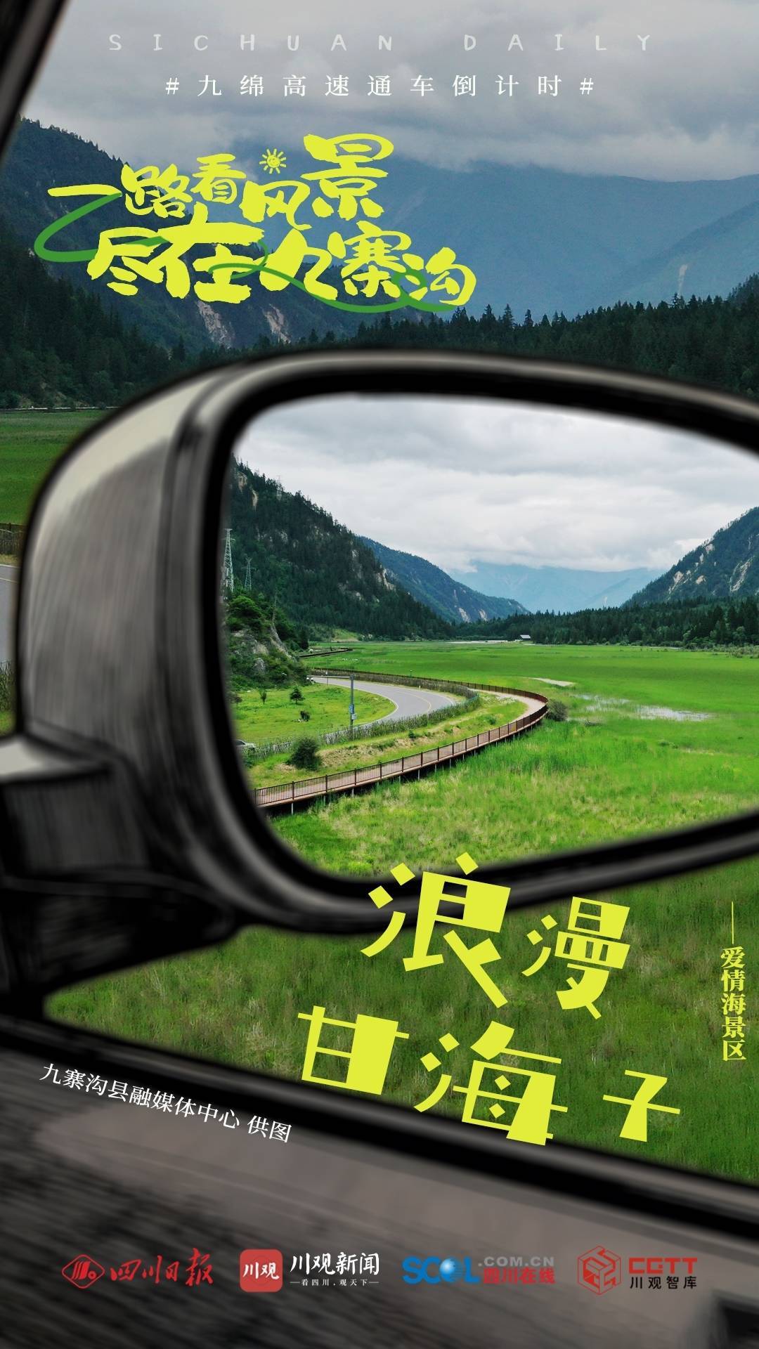 r随着九绵高速的全线通车,这也意味着,从成都出发,到九寨沟仅需4个多小时,真正可实现“朝赏锦绣天府,午游天下九寨”的梦想。